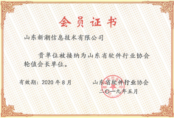 2019年5月,山東新潮信息被接納為山東省軟件行業(yè)協(xié)會輪值會長單位